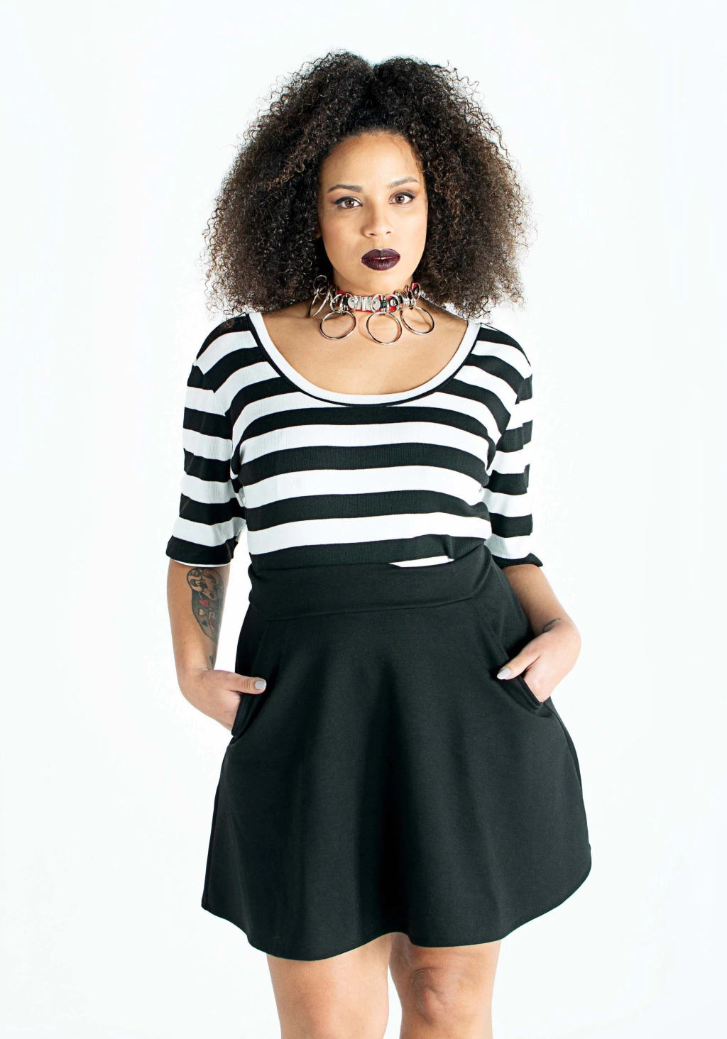 Kenia (pelo afro) està usando TALLE M y sus medidas son: 95-77-109 y mide 1,60cm