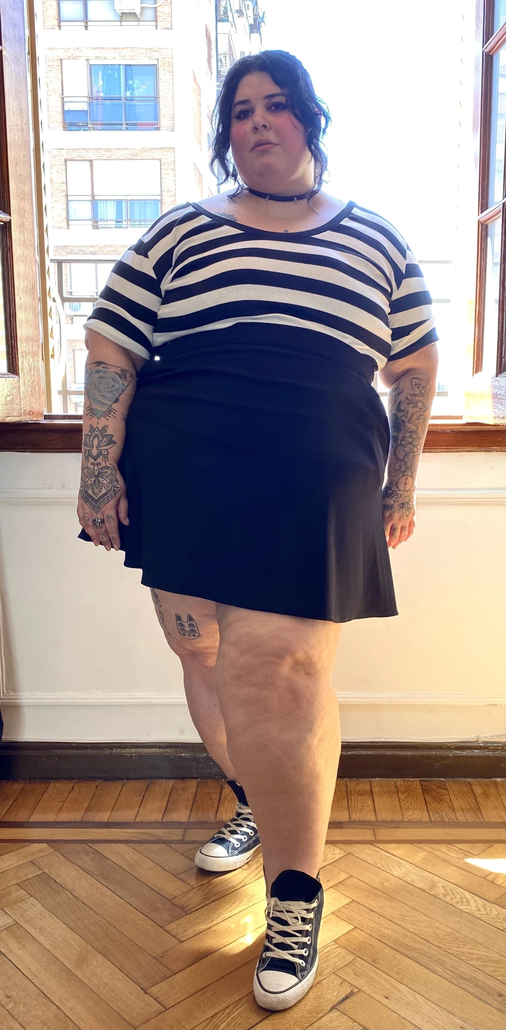 Iara (pelo super corto) està usando TALLE S y sus medidas son: 95-74-89 y mide 1,67cm