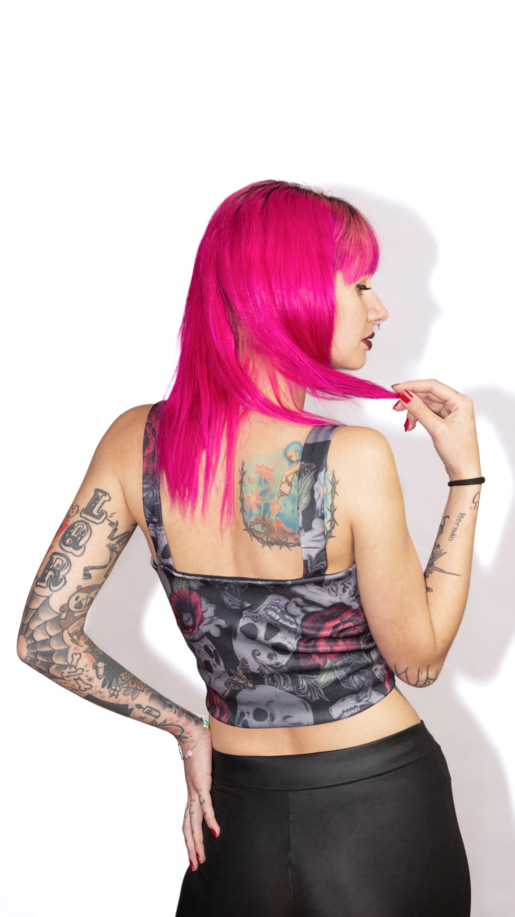 Top de microfibra con lycra, con estampado exclusivo de la marca. Tené en cuenta algo! Esta prenda se estampó sobre textil blanco, con lo cual, podría llegar a "abrirse" un poco la estampa, en las partes en donde más ajustada te quede.
