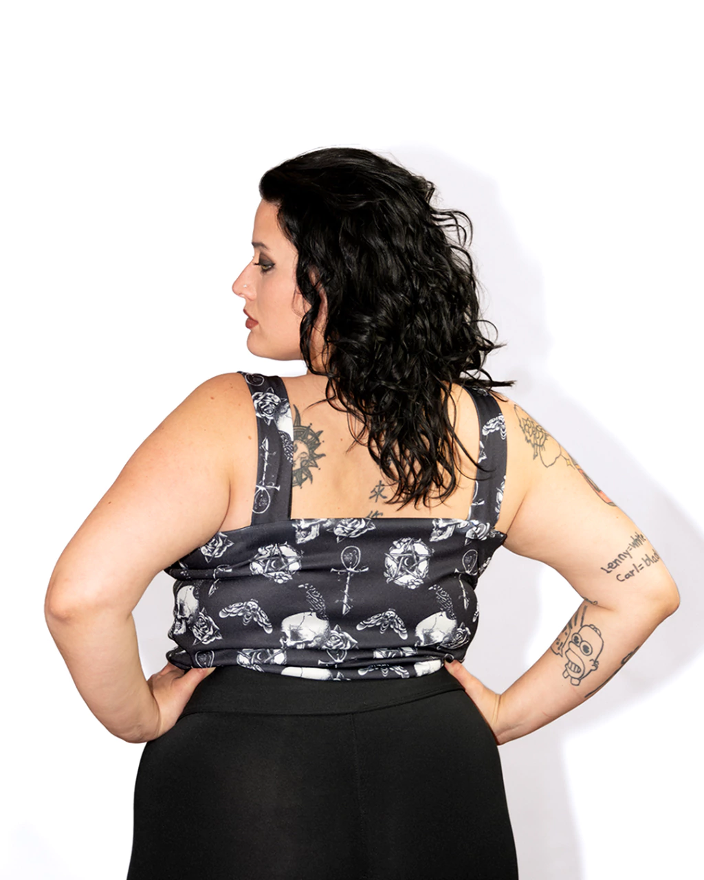 Top de microfibra con lycra, con estampado exclusivo de la marca. Tené en cuenta algo! Esta prenda se estampó sobre textil blanco, con lo cual, podría llegar a "abrirse" un poco la estampa, en las partes en donde más ajustada te quede.