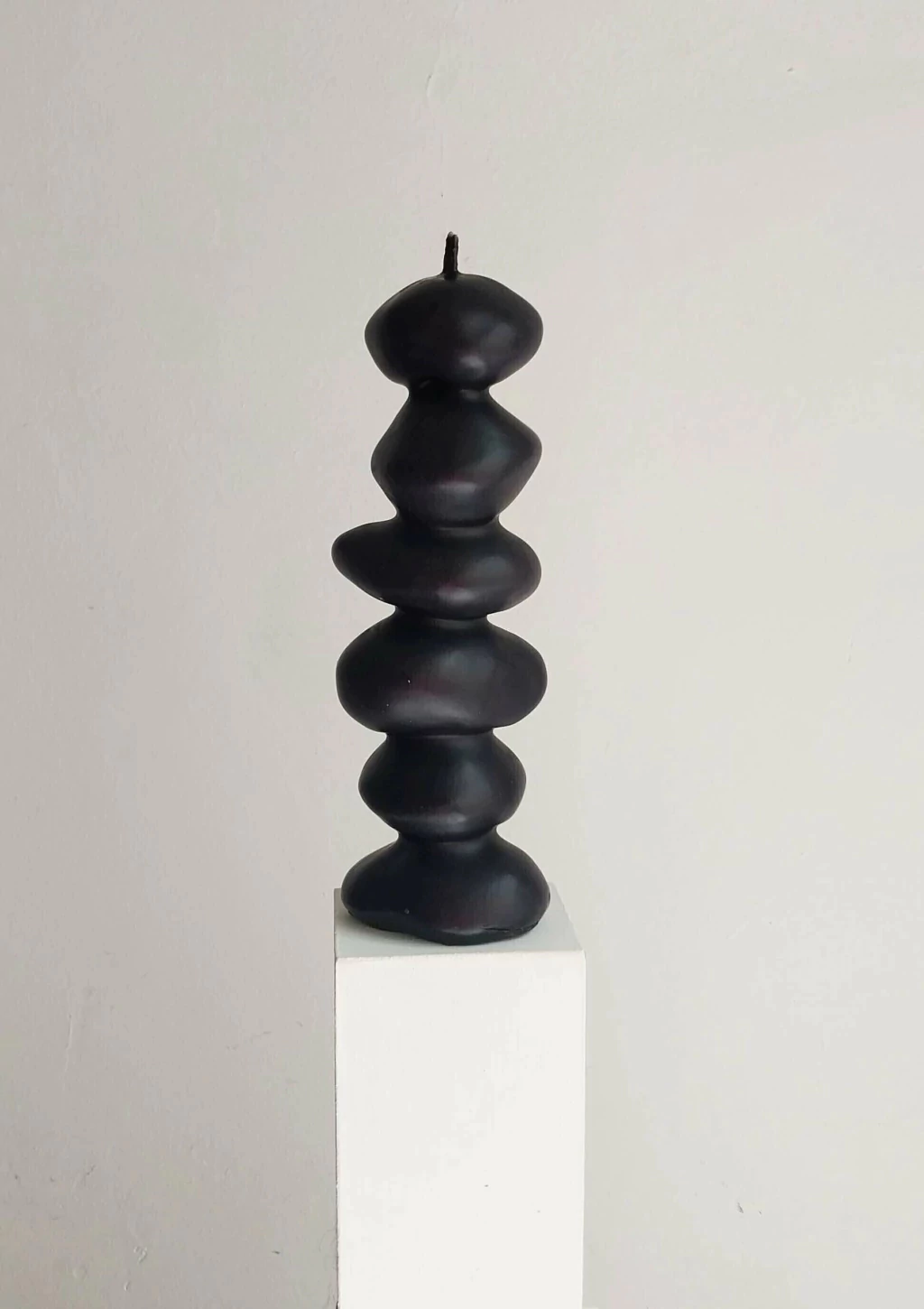 Vela hecha en base a la mezcla de cera de abeja y soja, coloreada con pigmentos naturales y sintéticos.