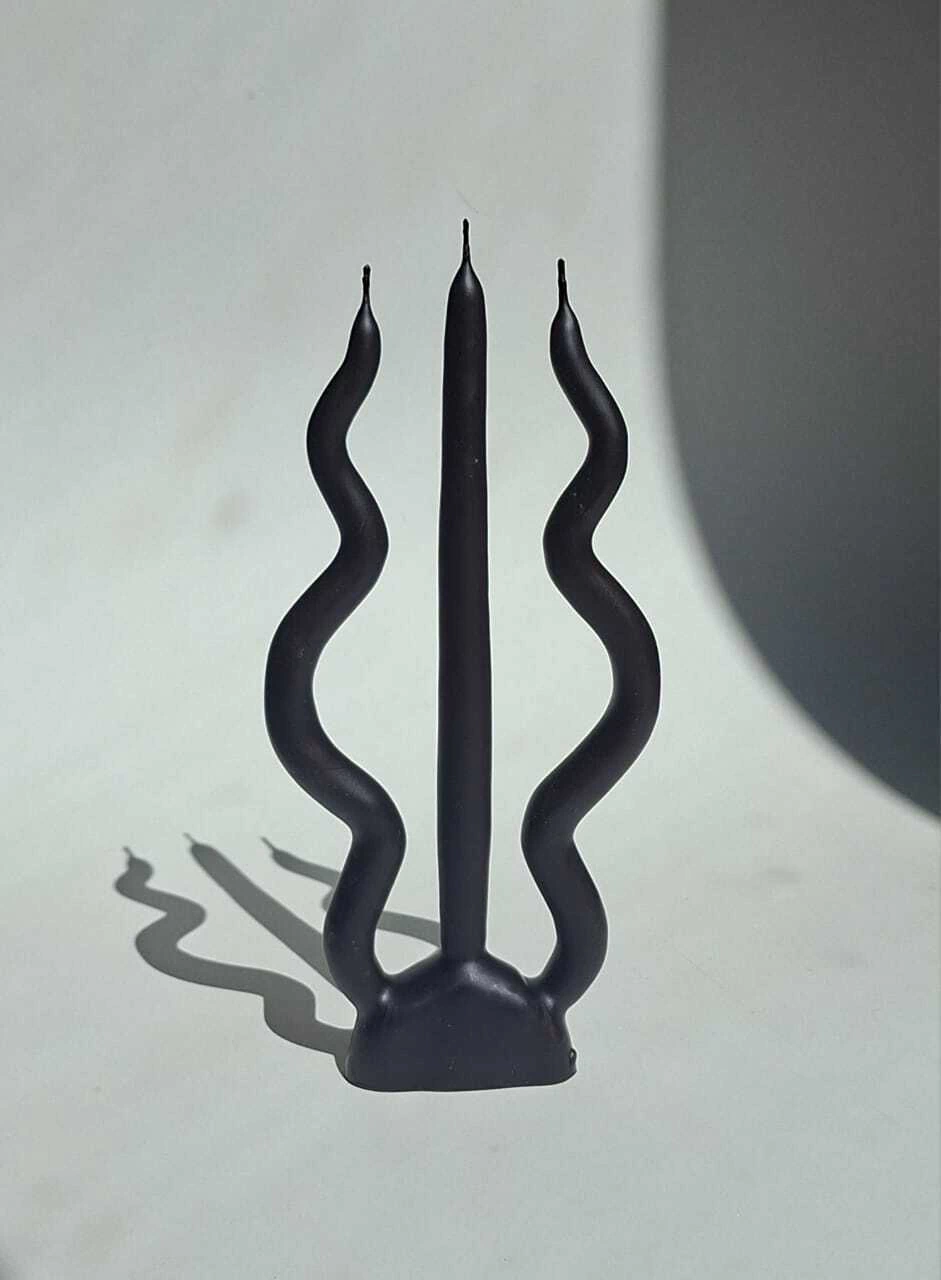 Vela hecha en base a la mezcla de cera de abeja  y soja, coloreada con pigmentos naturales y sintéticos.